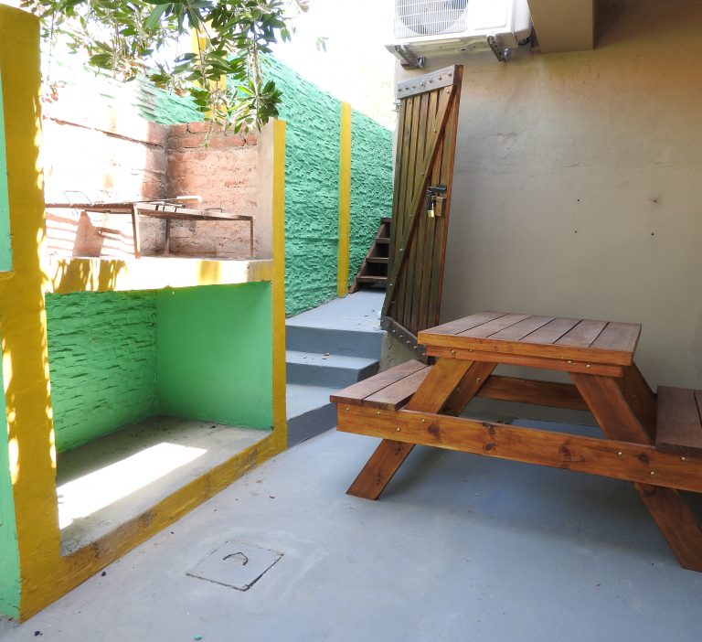 - Patio Exclusivo con mesa de jardín y parrillero.