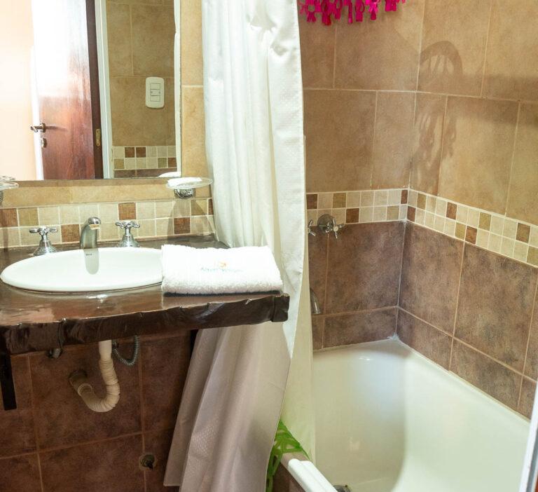- Baño con bañera y secador de cabellos.