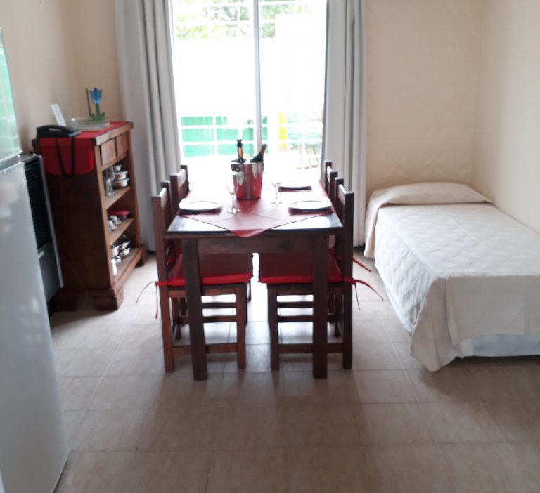 - 1 habitación con cama matrimonial (sommier de 2 plazas y colchón con resortes), placard y tv led con servicio de cable.