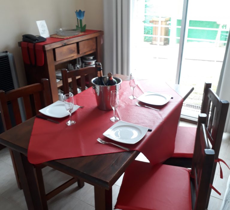 - Cocina- comedor ( anafes eléctricos, vajilla completa, batería de cocina, heladera, pava eléctrica y microondas)